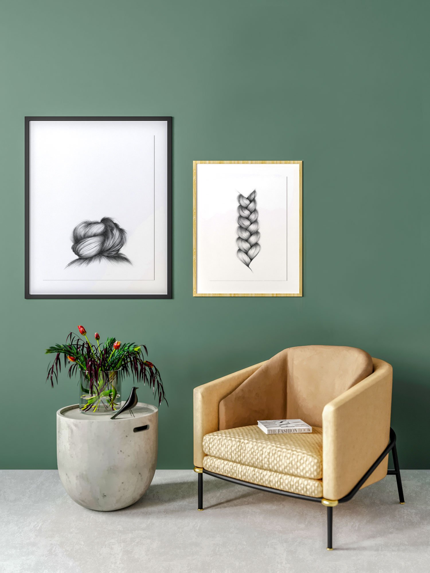 Estudio visual de retratos con mirada fija y serena hacia el espectador. La obra reinterpreta la estética de los Tankas budistas, contrastando la quietud absoluta de la mirada con la fluidez y el dinamismo del cabello.